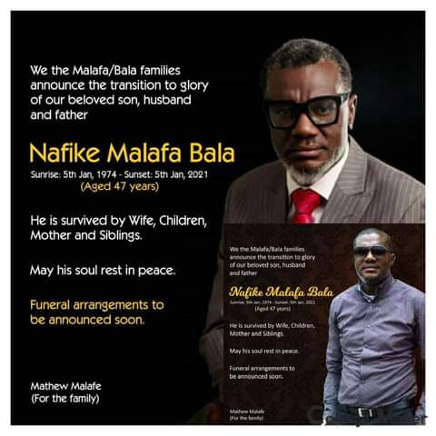 A 47-year-old Nigerian man, Nafike Malafa Bala based in Canada has died on his birthday.